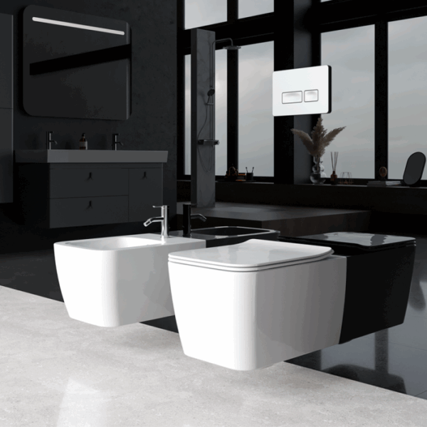Λεκάνη Κρεμαστή Πορσελάνης Cerastyle City Rimless 019109-w-97 Ματ Μαύρο Σετ