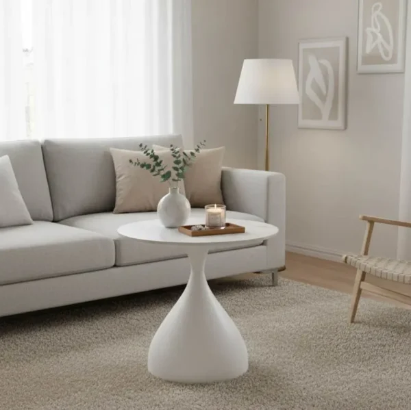 Βοηθητικό τραπέζι Kirkene sintered stone σε απόχρωση λευκό μαρμάρου με λευκό μέταλλο