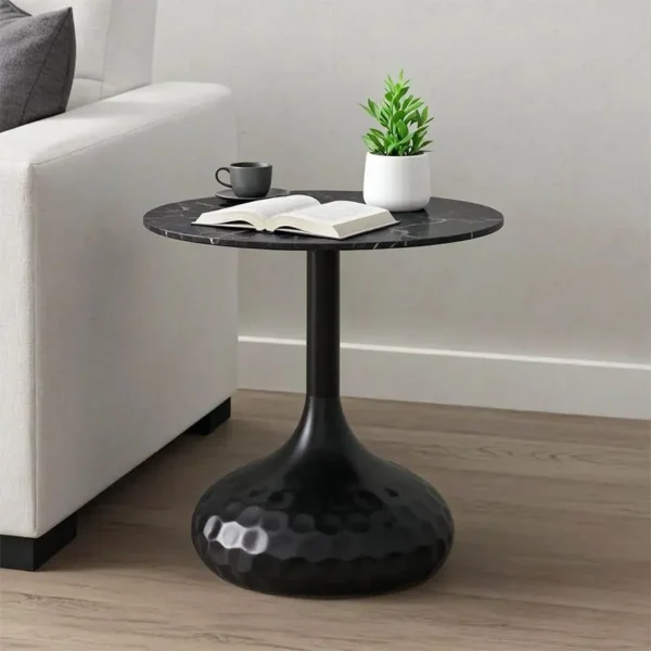 Βοηθητικό τραπέζι Kirkene sintered stone σε απόχρωση μαύρο μαρμάρου με μαύρο μέταλλο