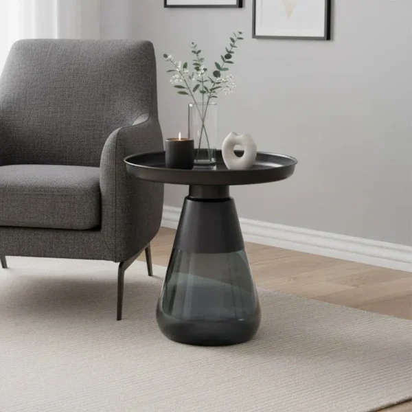 Βοηθητικό τραπέζι Kunlo μαύρο μέταλλο-μαύρο γυαλί