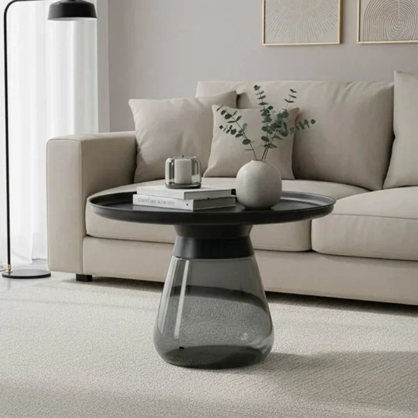 Βοηθητικό τραπέζι Kunlo μαύρο μέταλλο-μαύρο γυαλί