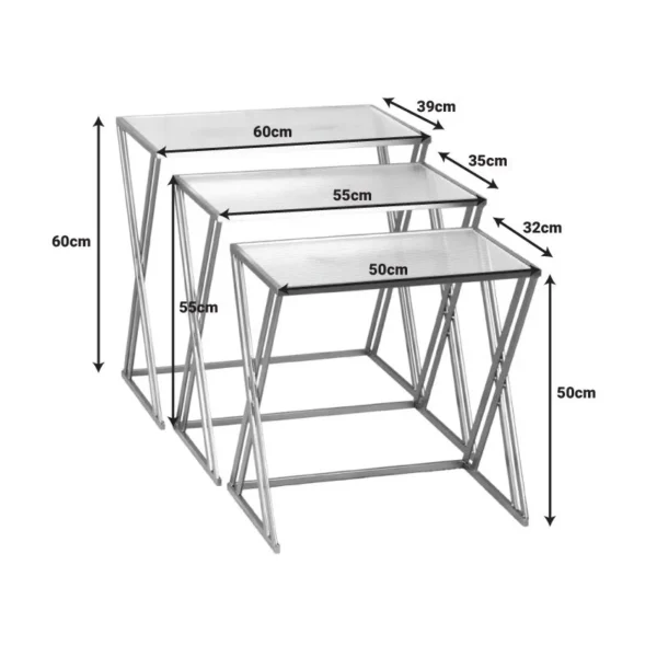 Τραπέζια σαλονιού σετ 3τεμ Pitche χρυσό μέταλλο-γυαλί