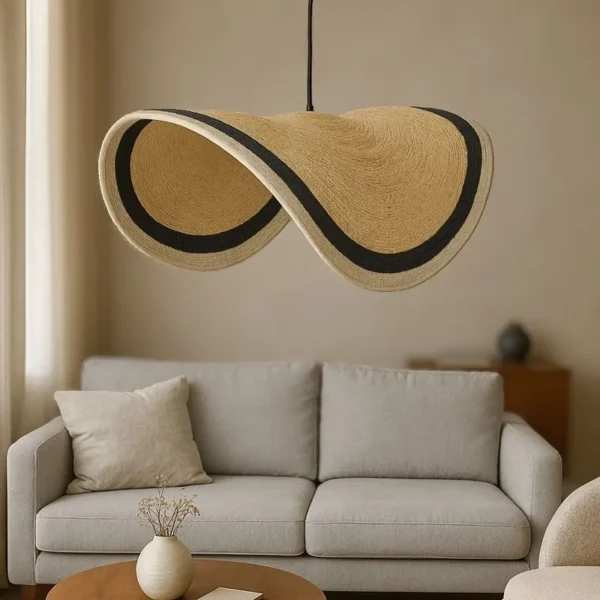 Φωτιστικό οροφής Hatchie φυσικό-μαύρο-λευκό ψάθα-μέταλλο Φ100×133εκ