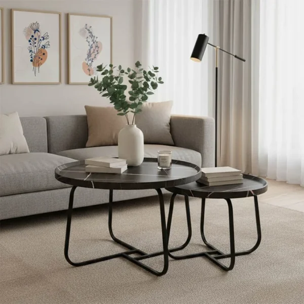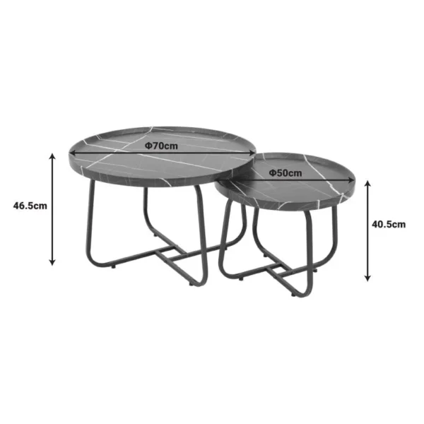 Tραπέζια σαλονιού Crismory σετ 2τεμ MDF σε απόχρωση μαύρο μαρμάρου και μαύρα μεταλλικά πόδια