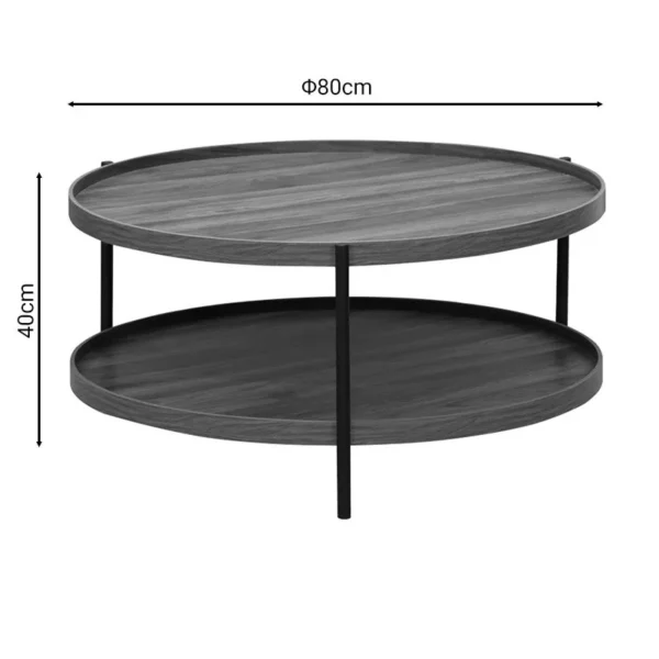 Tραπέζια σαλονιού Crismory σετ 2τεμ MDF σε καφέ απόχρωση και μαύρα μεταλλικά πόδια