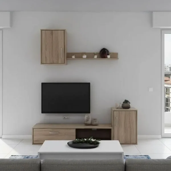 Σύνθετο σαλονιού Leganto σε sonoma με λευκή απόχρωση