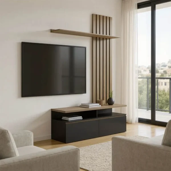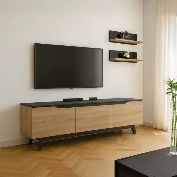 Σύνθετο σαλονιού Perlento σε μαύρο με sonoma απόχρωση