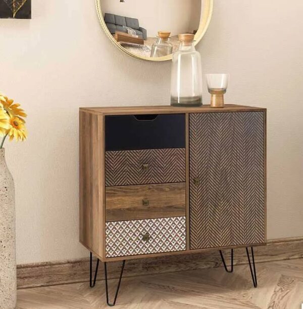 Μπουφές-συρταριέρα Boho με συρτάρια καρυδί μεταλλικά πόδια
