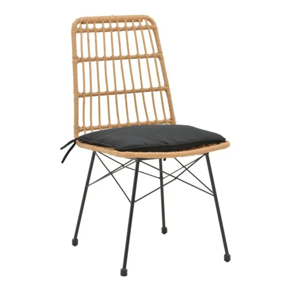 Καρέκλα Naoki rattan σε φυσική απόχρωση με μαύρο μαξιλάρι και μεταλλικό μαύρο πόδι 45.5×59.5×89εκ
