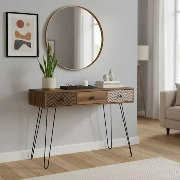 Κονσόλα Boho καρυδί με μεταλλικά πόδια 100×50,5×74,5εκ