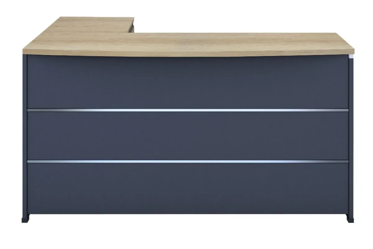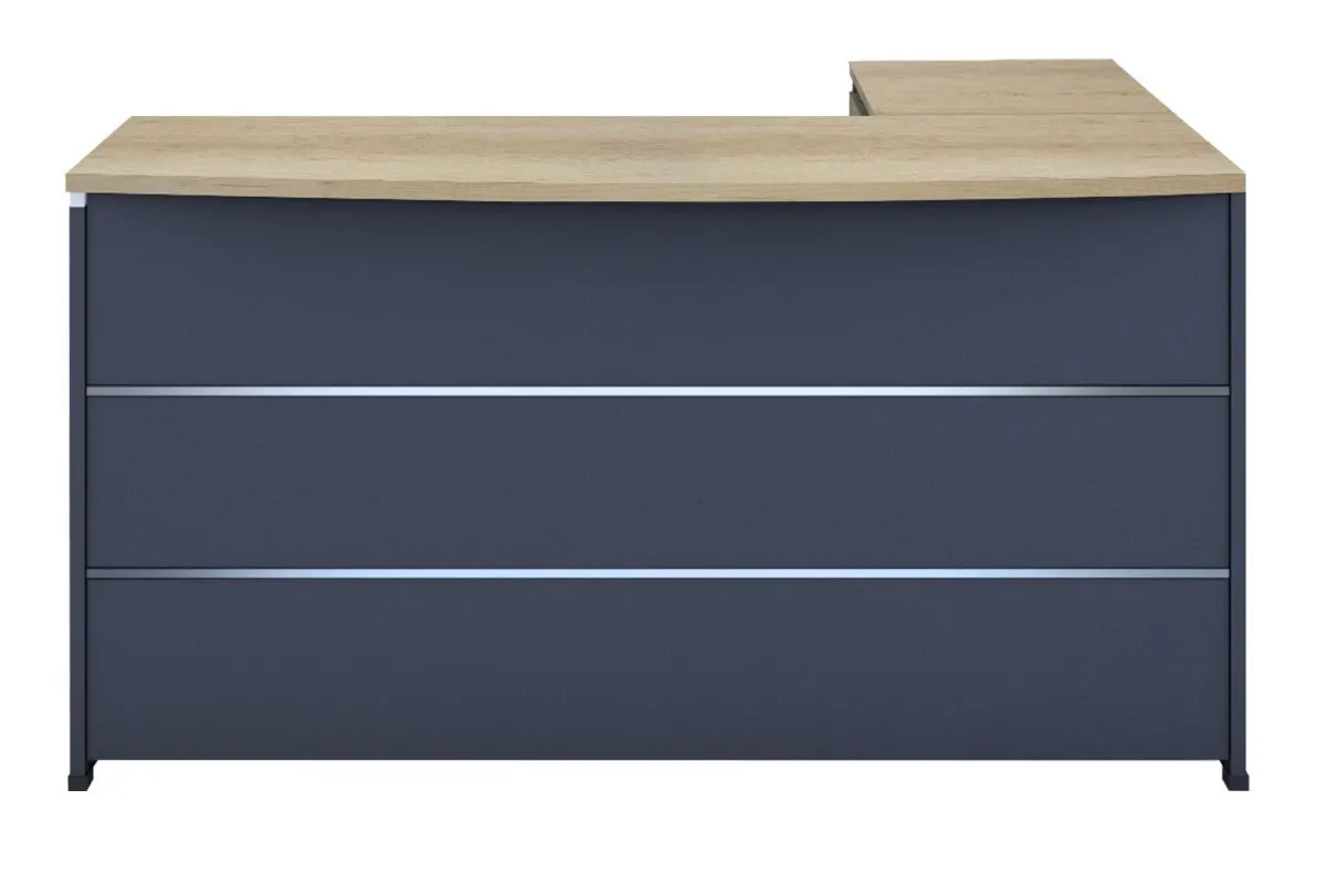 Γραφείο διεύθυνσης με ενσωματωμένο γωνιακό αναστρέψιμο ερμάριο στον εντυπωσιακό χρωματισμό: Φυσικό – ανθρακί. Κατασκευασμένο από υλικά υψηλών προδιαγραφών και σύμφωνα με τις εργονομικές απαιτήσεις του σήμερα.