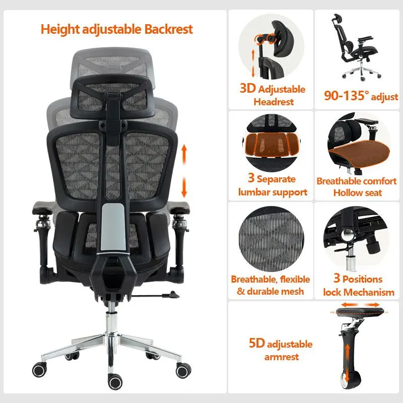 - 6D Ρυθμιζόμενα Μπράτσα: Προσαρμόζονται σε ύψος, βάθος, πλάτος και περιστροφή, προσφέροντας απόλυτη άνεση στα χέρια και τους καρπούς.