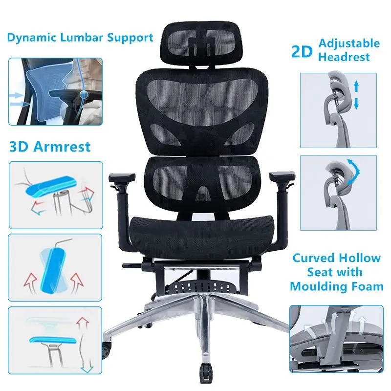 * Προσαρμοσμένο υποπόδιο: που υποστηρίζει την πολύωρη χρήση του καθίσματος, εξασφαλίζοντας την ξεκούραση του χρήστη.