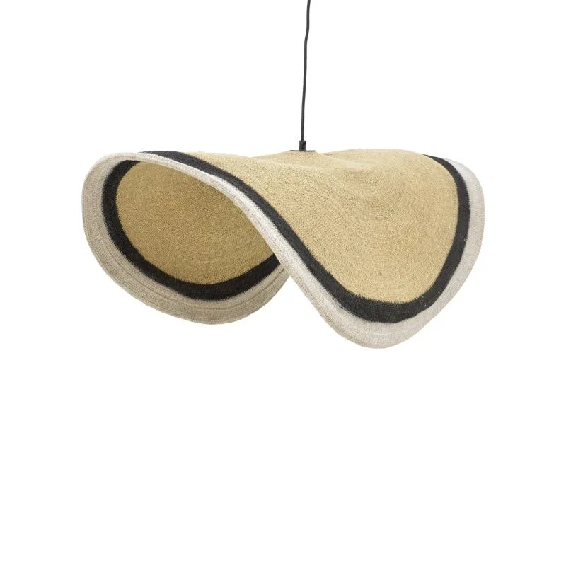 Φωτιστικό οροφής Hatchie φυσικό-μαύρο-λευκό ψάθα-μέταλλο Φ70×123εκ