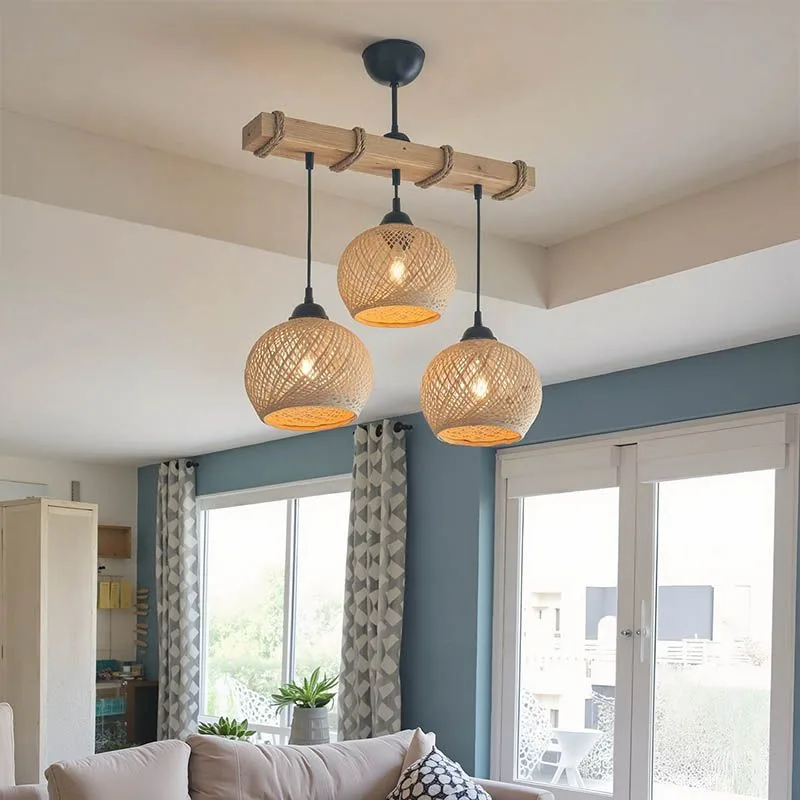 • Περιμετρικά του ξύλου φέρει σχοινί που προσθέτει μία boho πινελιά στο φωτιστικό και απογειώνει το αισθητικό αποτέλεσμα.