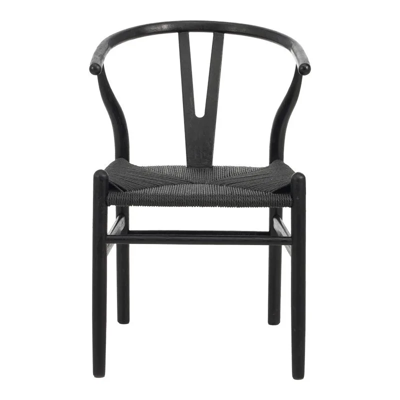 Καρέκλα Wishbone rubberwood-σχοινί σε μαύρη απόχρωση 53.5x57x74εκ