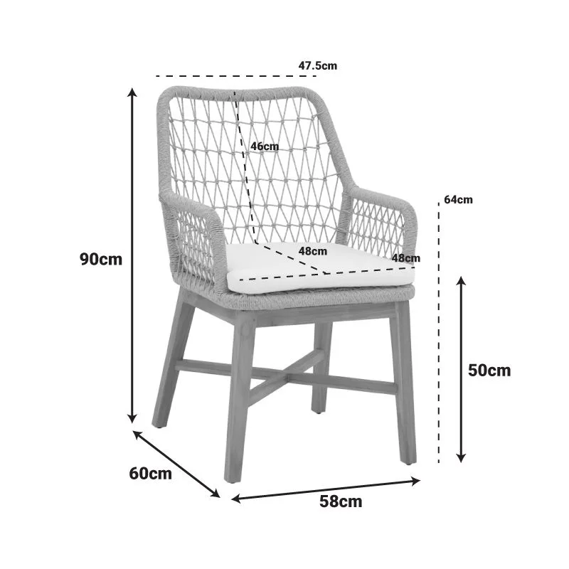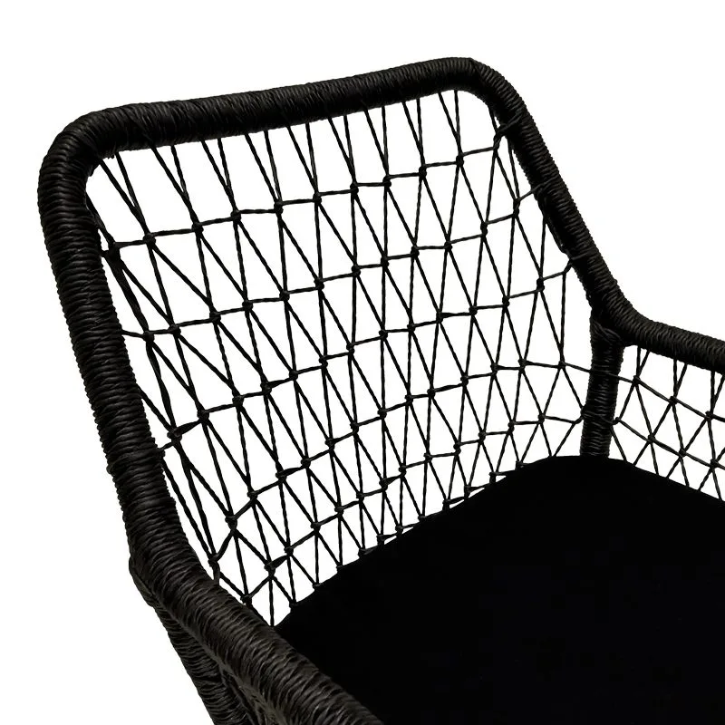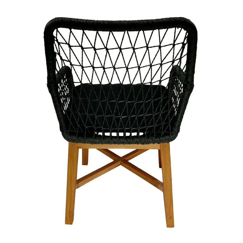 Πολυθρόνα Elaiza teak ξύλο και συνθετικό σχοινί σε φυσική-μαύρη απόχρωση με μαξιλάρι 58x60x90εκ