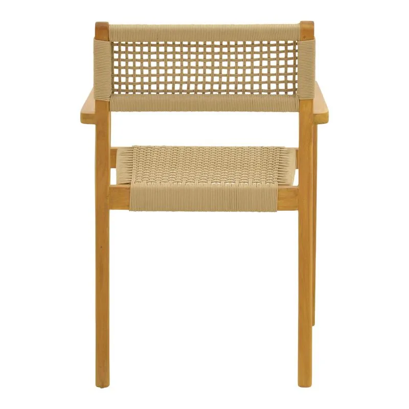 Πολυθρόνα Lengan σκελετός teak ξύλο σε φυσική απόχρωση-μπεζ σχοινί 54x52x80εκ