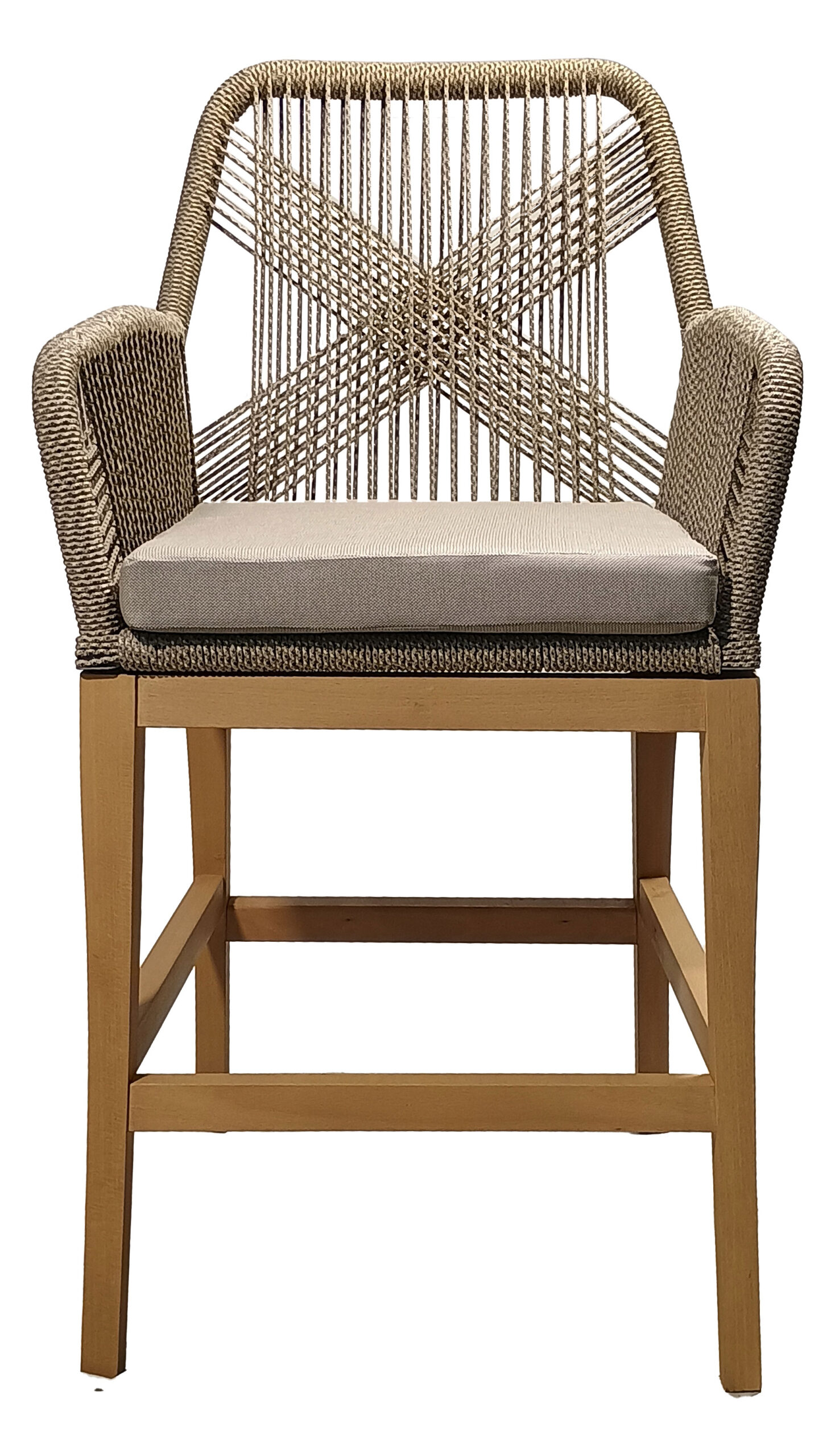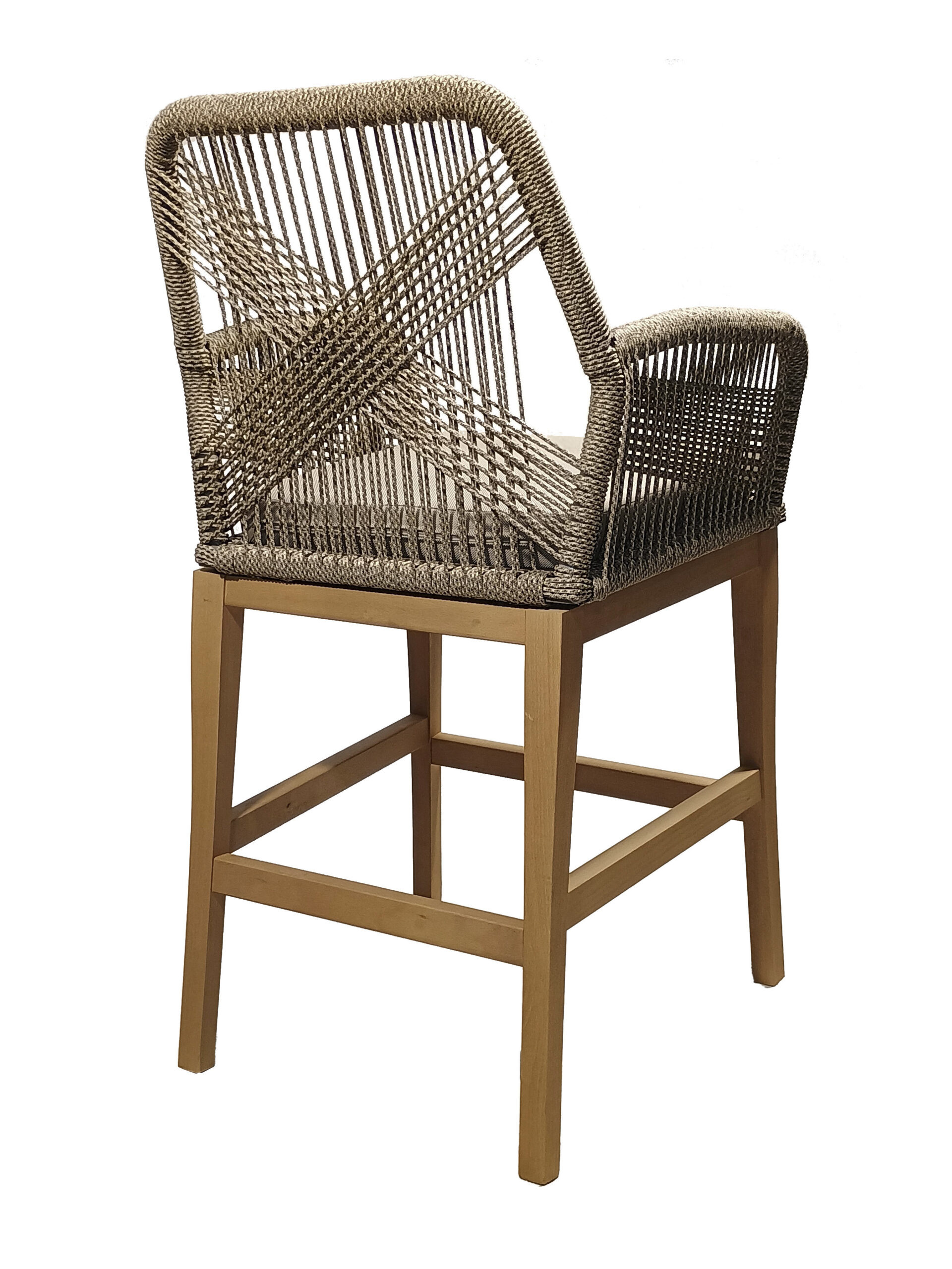 Σκαμπό Μπάρ OASIS με Πλάτη & Μπράτσα – Ξύλινη Βάση & Πλέξη Κορδονιού Σε Multi Απόχρωση – 50x56x115 εκ.