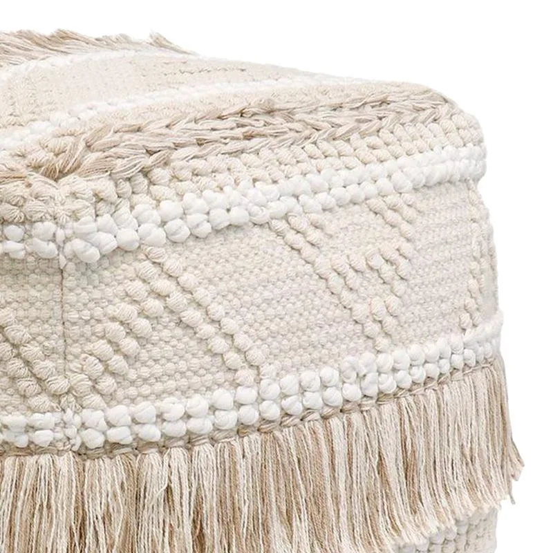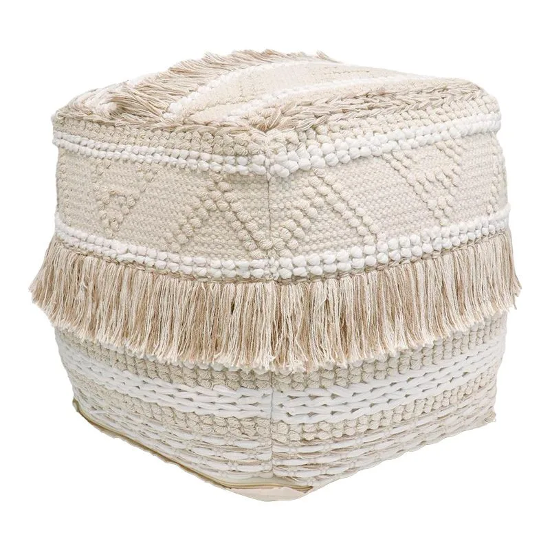 Σκαμπό-πουφ Scauni βαμβάκι σε λευκή-μπεζ απόχρωση 50x50x50εκ
