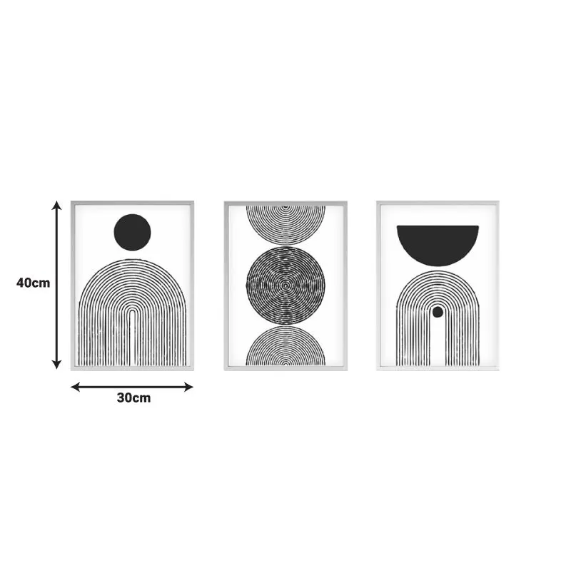 Αναβαθμίστε τη σύγχρονη αισθητική του χώρου σας με τον τρίπτυχo πίνακα καμβά Serchie. Με διαστάσεις 30x3x40 εκ. ανά τεμάχιο, ο πίνακας αποτελείται από τρία ανεξάρτητα έργα με αφηρημένα γεωμετρικά μοτίβα σε ασπρόμαυρη παλέτα.