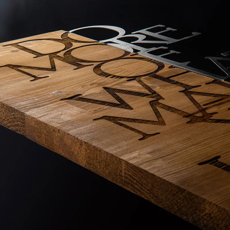 • Κατασκευασμένο από ξύλο πεύκου υψηλής ποιότητας (3mm) με την φράση να είναι κατασκευασμένη από μέταλλο σε μαύρο χρώμα (1,5mm).