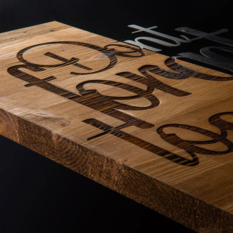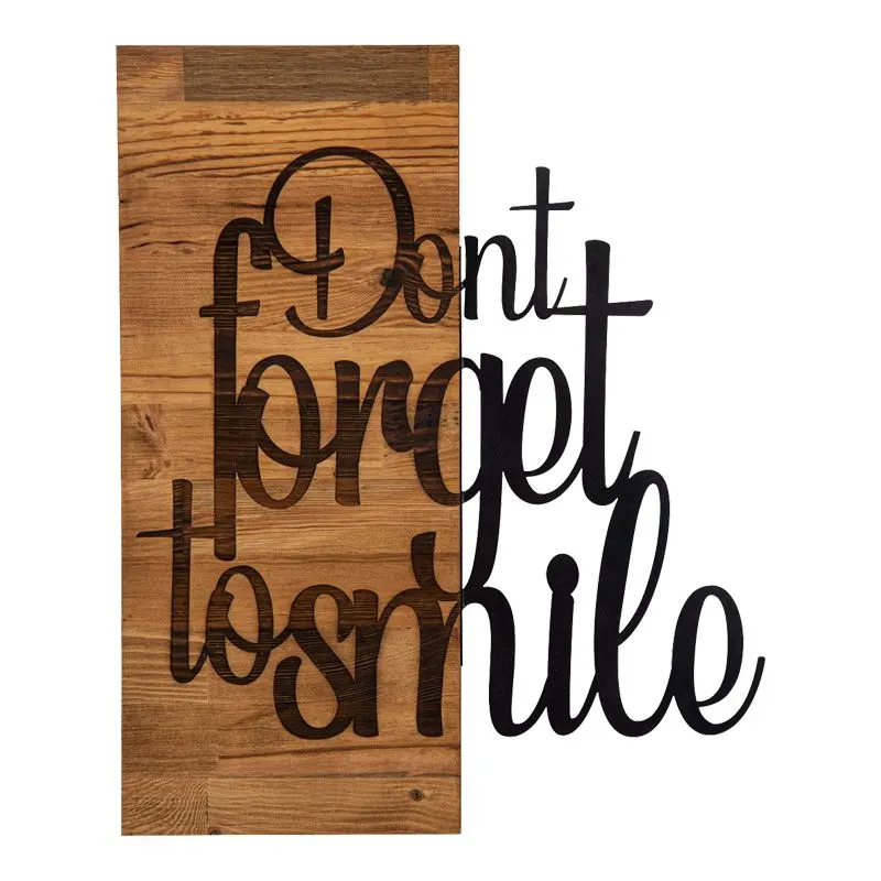 • Κατασκευασμένο από ξύλο πεύκου υψηλής ποιότητας (3cm) με την φράση να είναι κατασκευασμένη από μέταλλο σε μαύρο χρώμα (1,2mm).