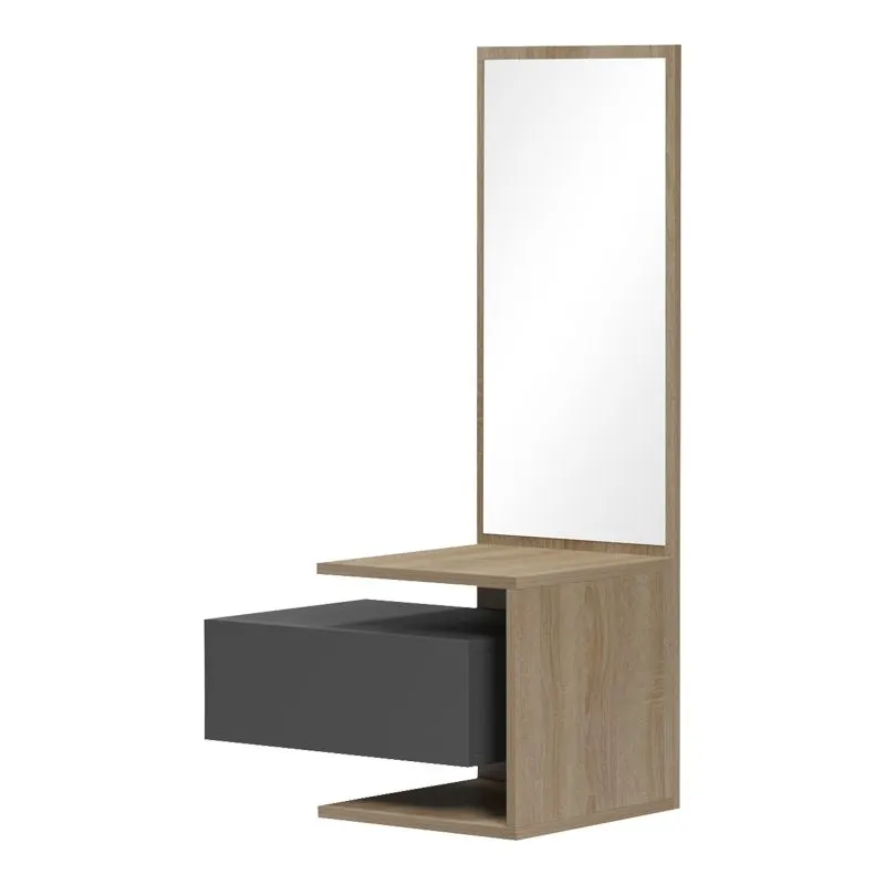 Έπιπλο εισόδου Kendi επιτοίχιο με καθρέπτη σε ανθρακί-sonoma