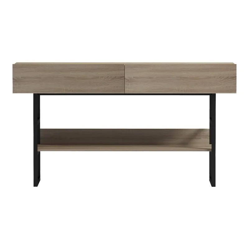 Αναβαθμίστε τον χώρο σας με αυτή την κομψή και λειτουργική κονσόλα, ιδανική για την είσοδο, το σαλόνι ή το χωλ σας. Συνδυάζοντας ζεστή ξύλινη επιφάνεια με ανθεκτικό μεταλλικό σκελετό σε μαύρο ματ, προσφέρει ένα μοντέρνο βιομηχανικό στυλ που ταιριάζει αρμονικά σε κάθε σύγχρονη διακόσμηση.