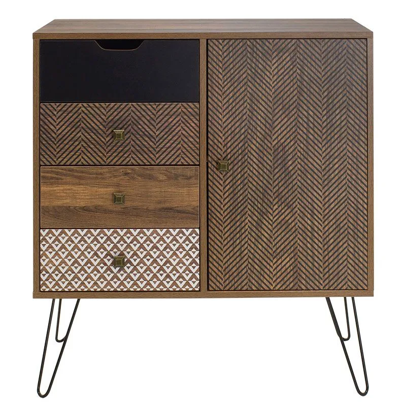 Συρταριέρα Boho με συρτάρια-ντουλάπι καρυδί μεταλλικά πόδια 79,5×39,5×86εκ