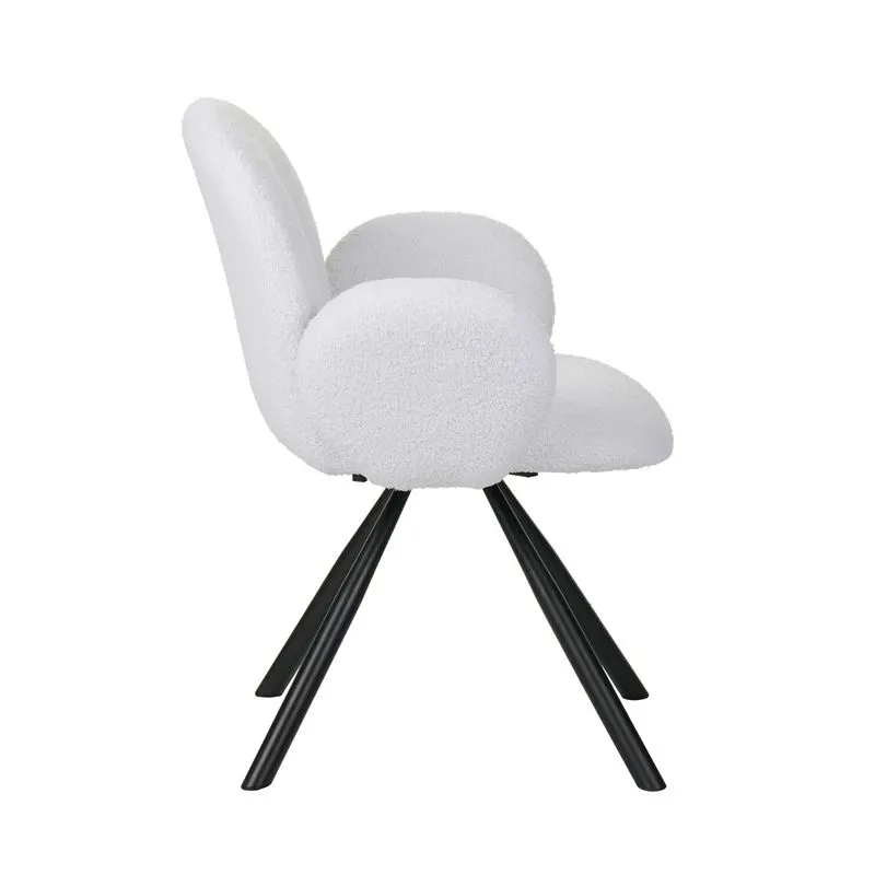 Πολυθρόνα Garzele λευκό μπουκλέ ύφασμα-πόδι μαύρο μέταλλο