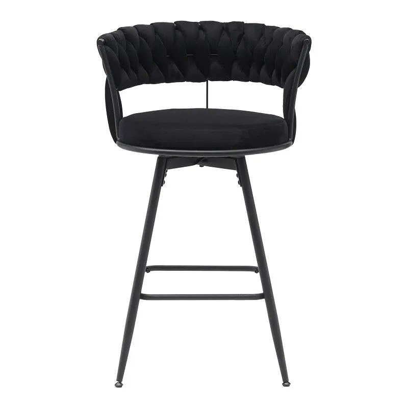 Σκαμπό μπαρ Alkia περιστρεφόμενο σε μπεζ ή μαύρο βελούδο με μαύρα πόδια μέταλλο 58x55x90εκ