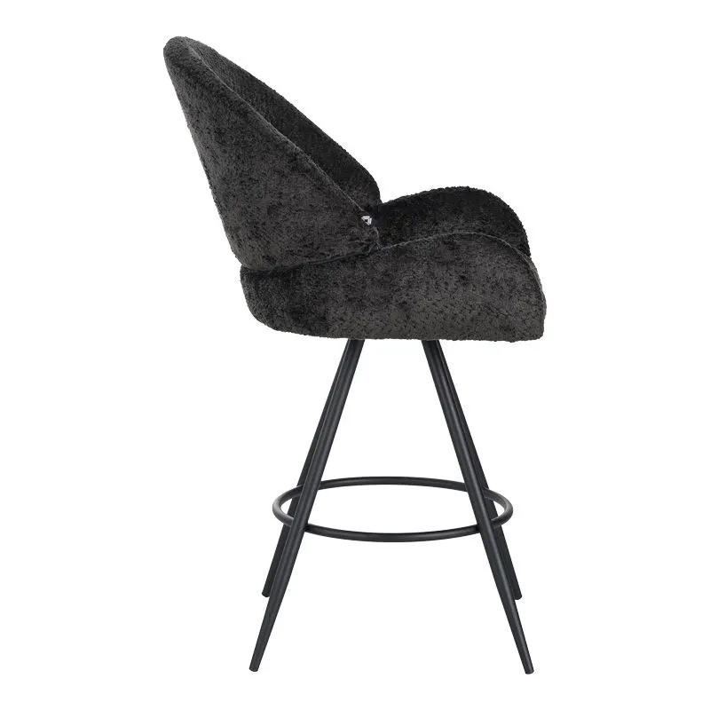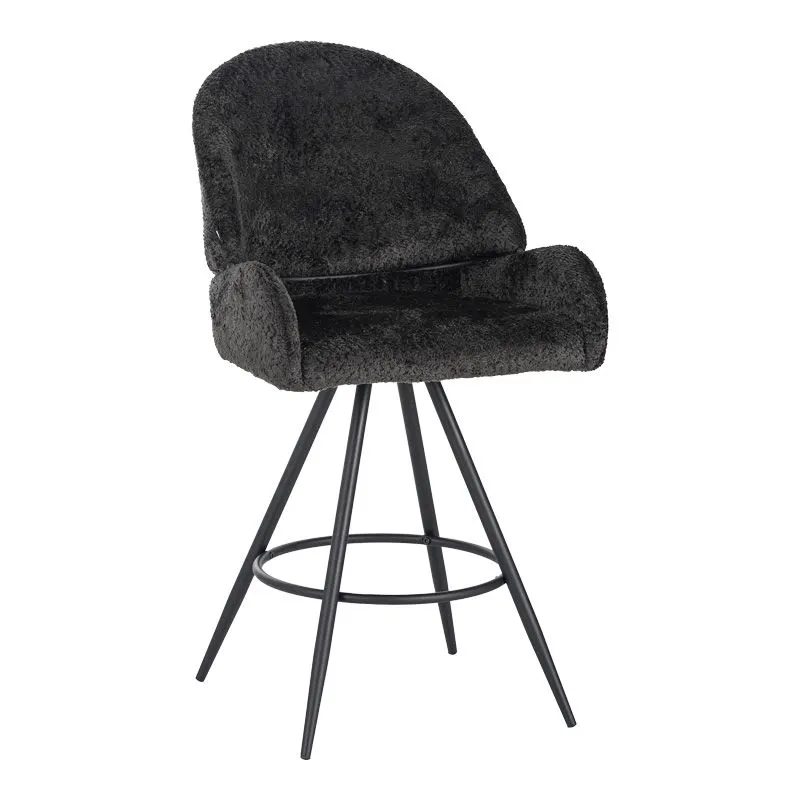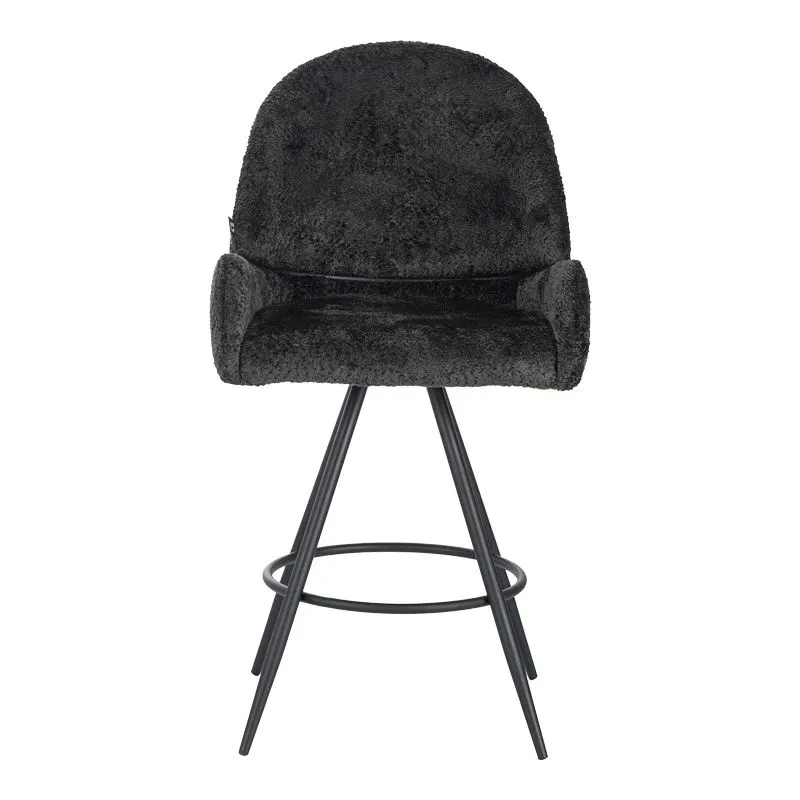 Σκαμπό μπαρ περιστρεφόμενο Morea μπουκλέ ύφασμα σε μαύρη απόχρωση με μαύρα μεταλλικά πόδια 55x66x107.5εκ