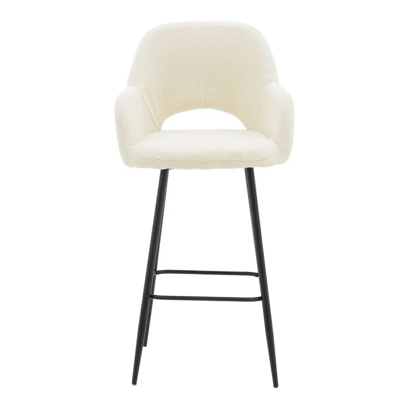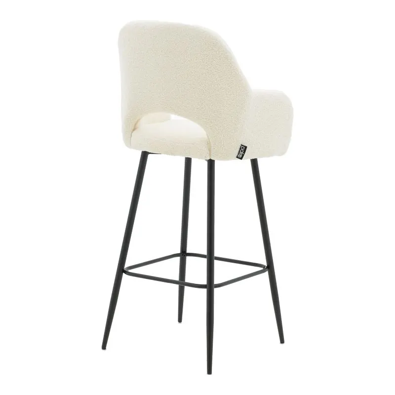Σκαμπό bar Renish μπουκλέ εκρού, γκρί-μεταλλικό μαύρο πόδι 51x57x114εκ