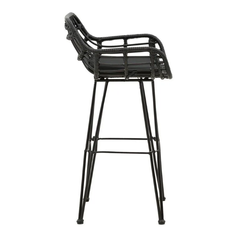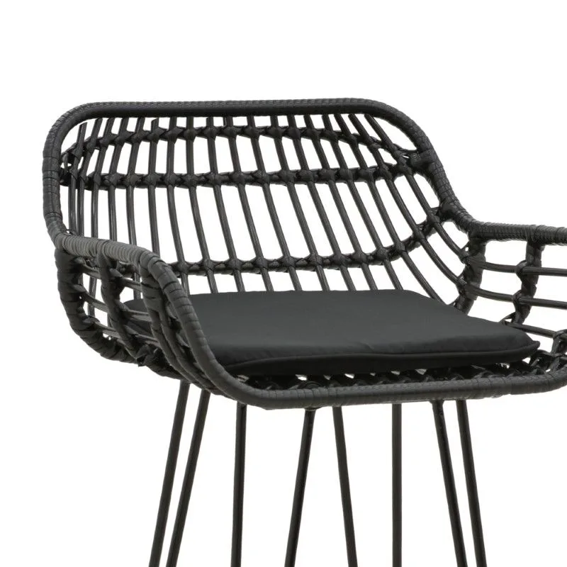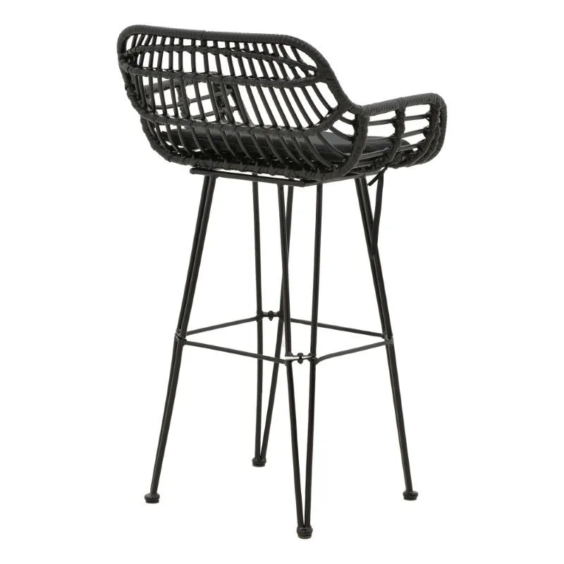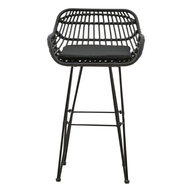 Σκαμπό μπαρ κήπου Naoki με μαξιλάρι pe μαύρο-μέταλλο μαύρο πόδι 52x50x90εκ