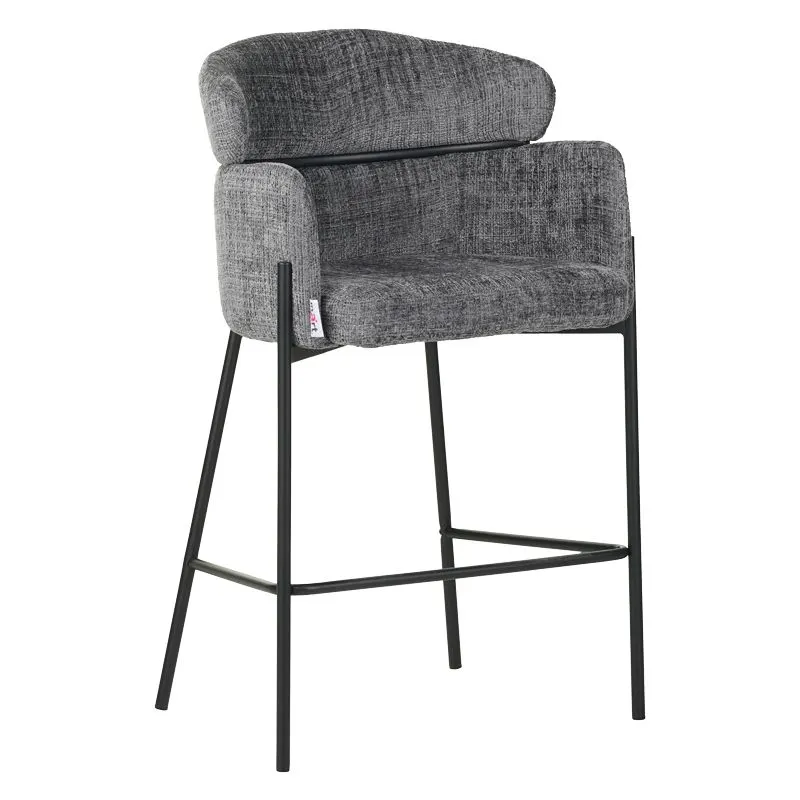 Σκαμπό μπαρ Tolerse μπεζ/ ανοιχτό γκρί, ύφασμα-πόδι μαύρο μέταλλο.
