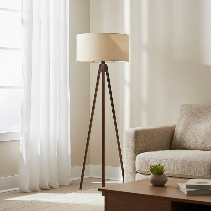 Φωτιστικό δαπέδου PWL-1059 Ε27 σε κρέμα-καρυδί απόχρωση Φ38×140εκ