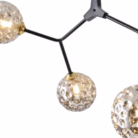 Το ATOM 5xG9 είναι ένα κομψό και μοντέρνο κρεμαστό φωτιστικό με συνδυασμό μετάλλου και γυαλιού σε αποχρώσεις μαύρου και γκρι, ιδανικό για μοντέρνους χώρους διακόσμησης. Διαθέτει πέντε ντουί G9 με μέγιστη ισχύ 5x7W, επιτρέποντας τη χρήση λαμπτήρων LED ή halogen για θερμό και οικονομικό φωτισμό. Η σύνδεση γίνεται εύκολα μέσω κλέμμας, ενώ η στιβαρή κατασκευή εξασφαλίζει ασφάλεια και αξιοπιστία.