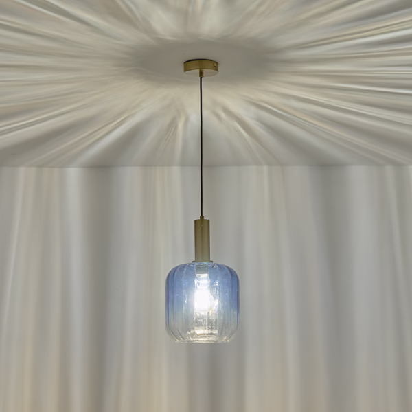 Το OMBRE είναι ένα κομψό κρεμαστό φωτιστικό Décor με γυάλινο κάλυμμα σε μπλε απόχρωση (Blue). Κατασκευασμένο από μέταλλο και γυαλί, συνδυάζει ανθεκτικότητα με μοντέρνα αισθητική, κατάλληλο για εσωτερικούς χώρους.