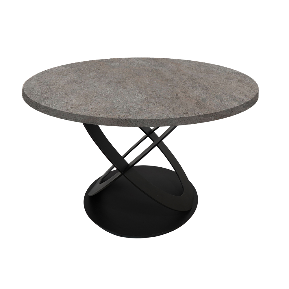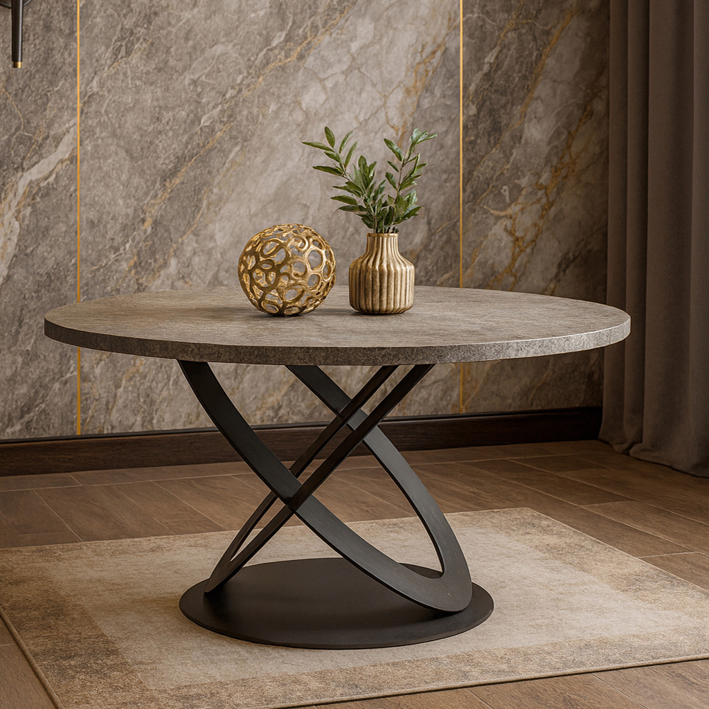 • Επιφάνεια: Στρογγυλή επιφάνεια από υψηλής ποιότητας μελαμινη με όψη τσιμέντου σε σκούρο χρώμα, που προσδίδει ζεστασιά και κομψότητα.