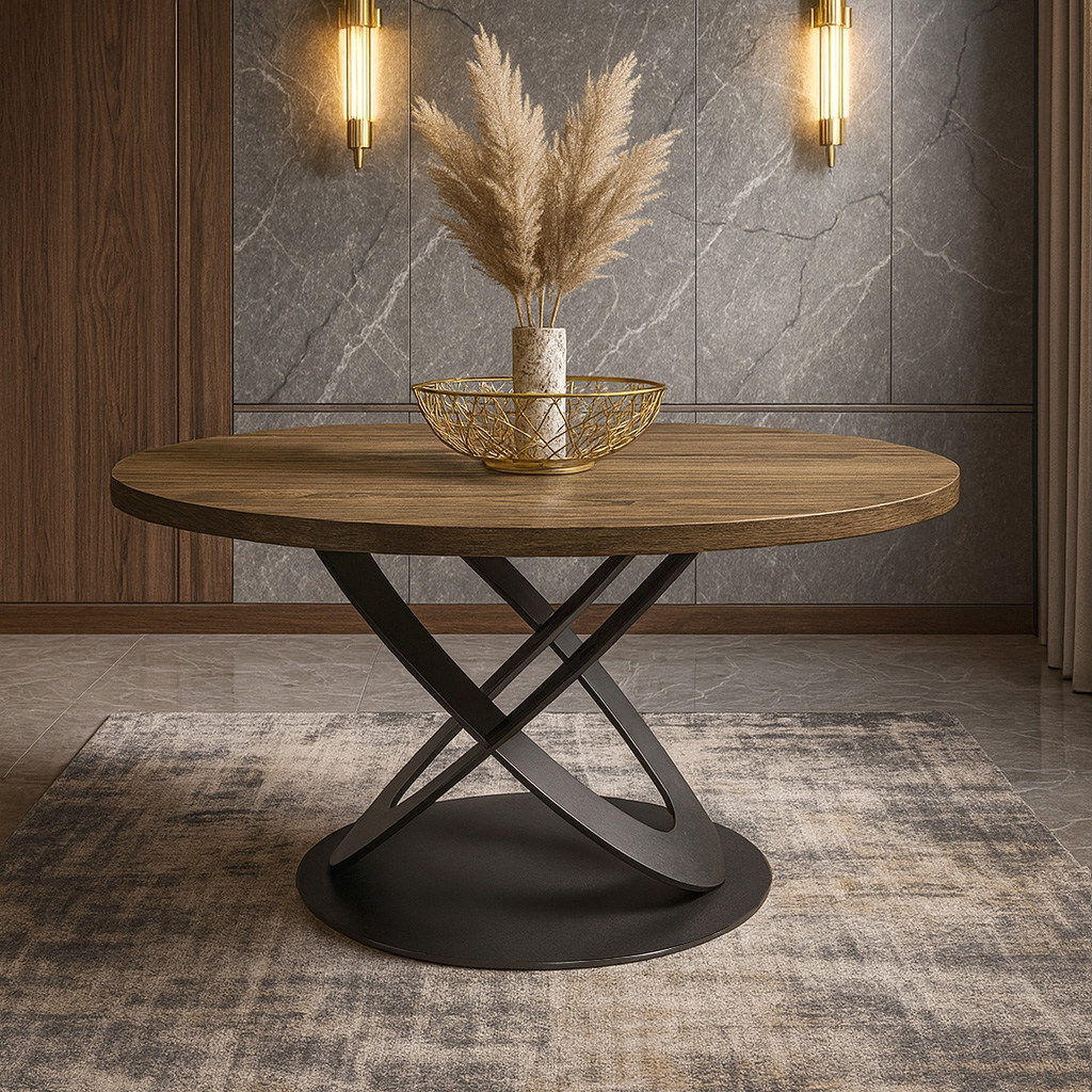 Επιφάνεια: Στρογγυλή επιφάνεια από υψηλής ποιότητας μελαμινη σε σκούρο καφέ χρώμα, που προσδίδει ζεστασιά και κομψότητα.
