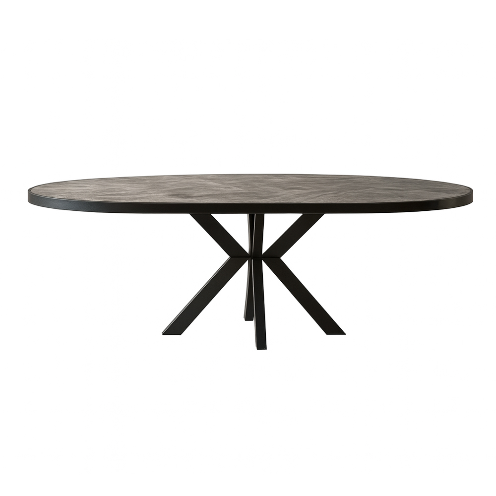 Αναβαθμίστε τον χώρο σας με αυτό το εκλεπτυσμένο οβάλ τραπέζι τραπεζαρίας που συνδυάζει σύγχρονη αισθητική και διαχρονική κομψότητα. Η επιφάνειά του διαθέτει υφή πέτρας σε σκούρα γκρι-σταχτί απόχρωση, προσδίδοντας μια πολυτελή και μοντέρνα αίσθηση σε κάθε χώρο. Η μεταλλική μαύρη βάση τύπου “αστέρι” προσφέρει σταθερότητα και εντυπωσιακή σχεδιαστική ισορροπία, καθιστώντας το τραπέζι ιδανικό για κάθε σύγχρονο σπίτι ή επαγγελματικό περιβάλλον.