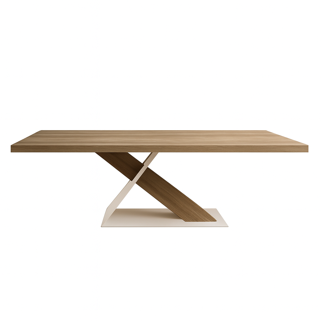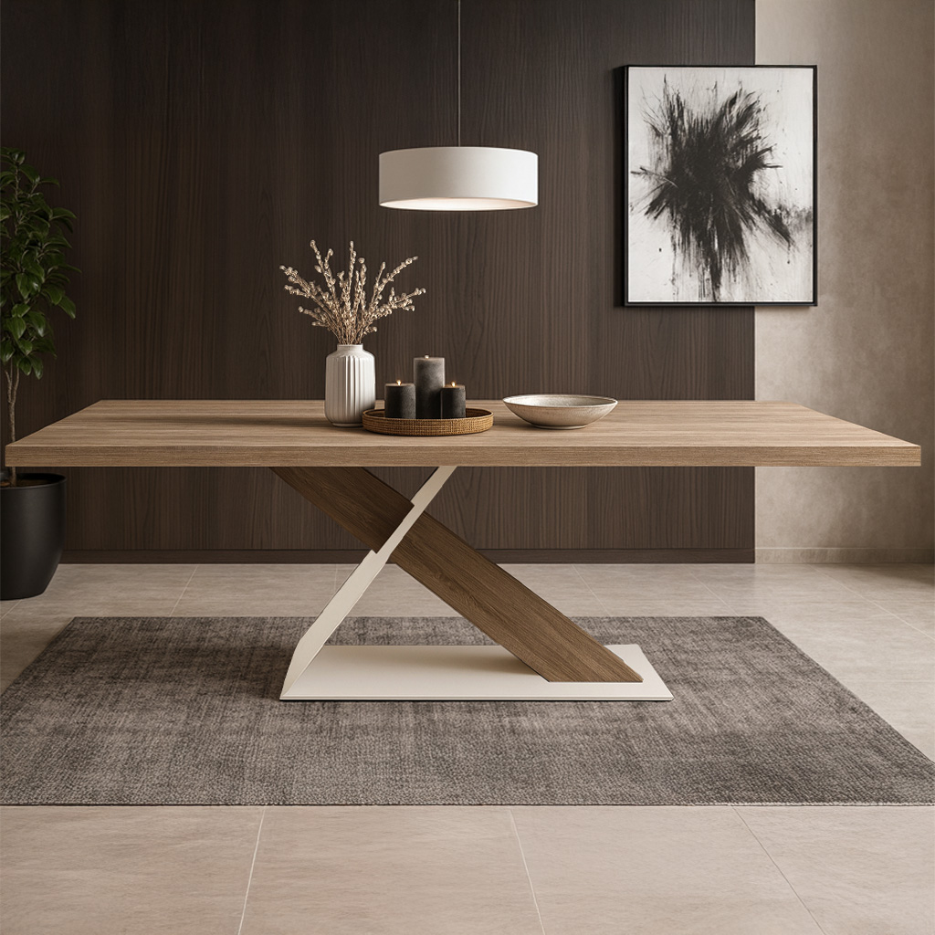 Μοντέρνο Τραπέζι Τραπεζαρίας Typo με Ξύλινη Επιφάνεια και Βάση σε Σχήμα Χ.