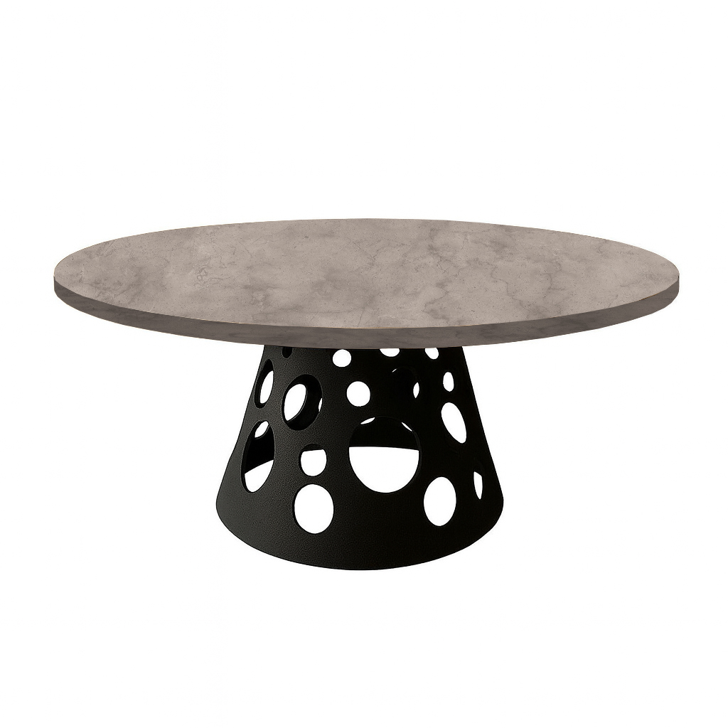 Αναβαθμίστε την αισθητική του χώρου σας με αυτό το εντυπωσιακό στρογγυλό τραπέζι, το οποίο συνδυάζει τη φυσική ζεστασιά του ξύλου με τον σύγχρονο σχεδιασμό της μεταλλικής βάσης. Η κομψή, σμιλευμένη βάση με κυκλικά ανοίγματα δημιουργεί ένα εικαστικό και μοντέρνο αποτέλεσμα, καθιστώντας το τραπέζι ιδανικό για elegant τραπεζαρίες, πολυτελή διαμερίσματα ή επαγγελματικούς χώρους υψηλής αισθητικής.