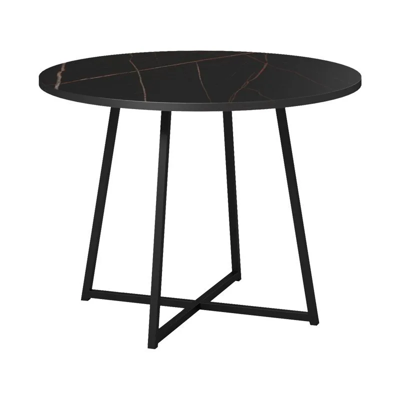 Τραπέζι Sarah Ι σε μαύρο μαρμάρου απόχρωση με μαύρα μεταλλικά πόδια Φ100×76εκ