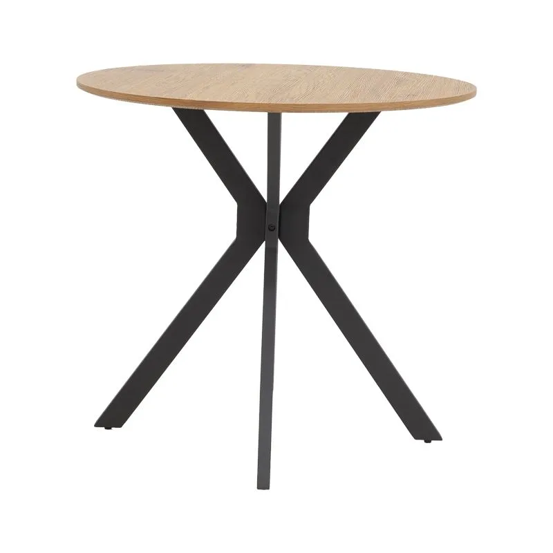 Τραπέζι Xuson φυσικό mdf-πόδι μαύρο μέταλλο Φ120×75εκ
