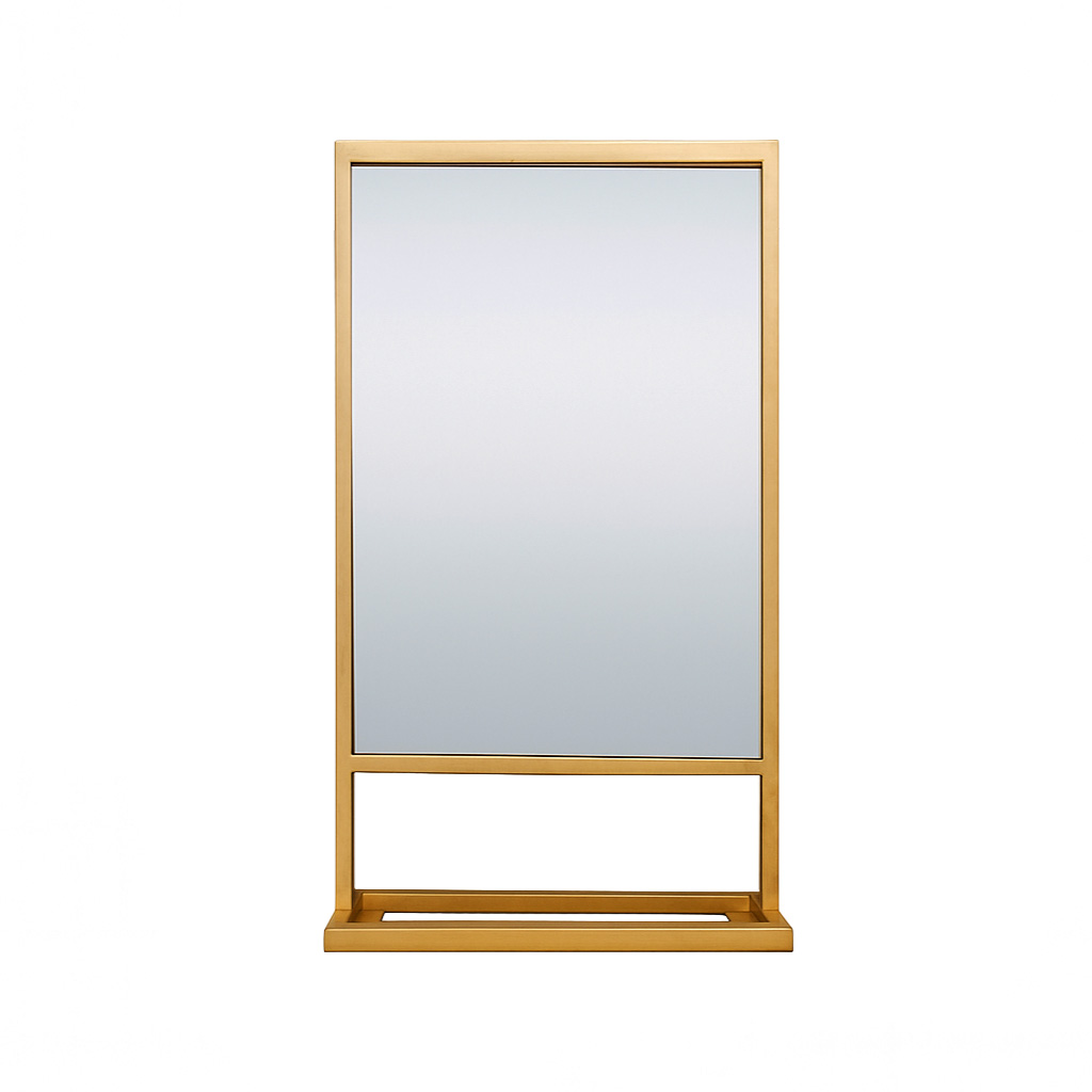 - Ο καθρέφτης Darko 60×80 cm (με χρυσό μεταλλικό πλαίσιο και βάση αποθήκευσης), αποτελεί ένα εντυπωσιακό design element, σε ορθογώνιο σχήμα ξεχωρίζει σε κάθε χώρο μπάνιου. Είναι ιδανικός τόσο για καθημερινή περιποίηση όσο και για τη δημιουργία ατμόσφαιρας υψηλής αισθητικής.