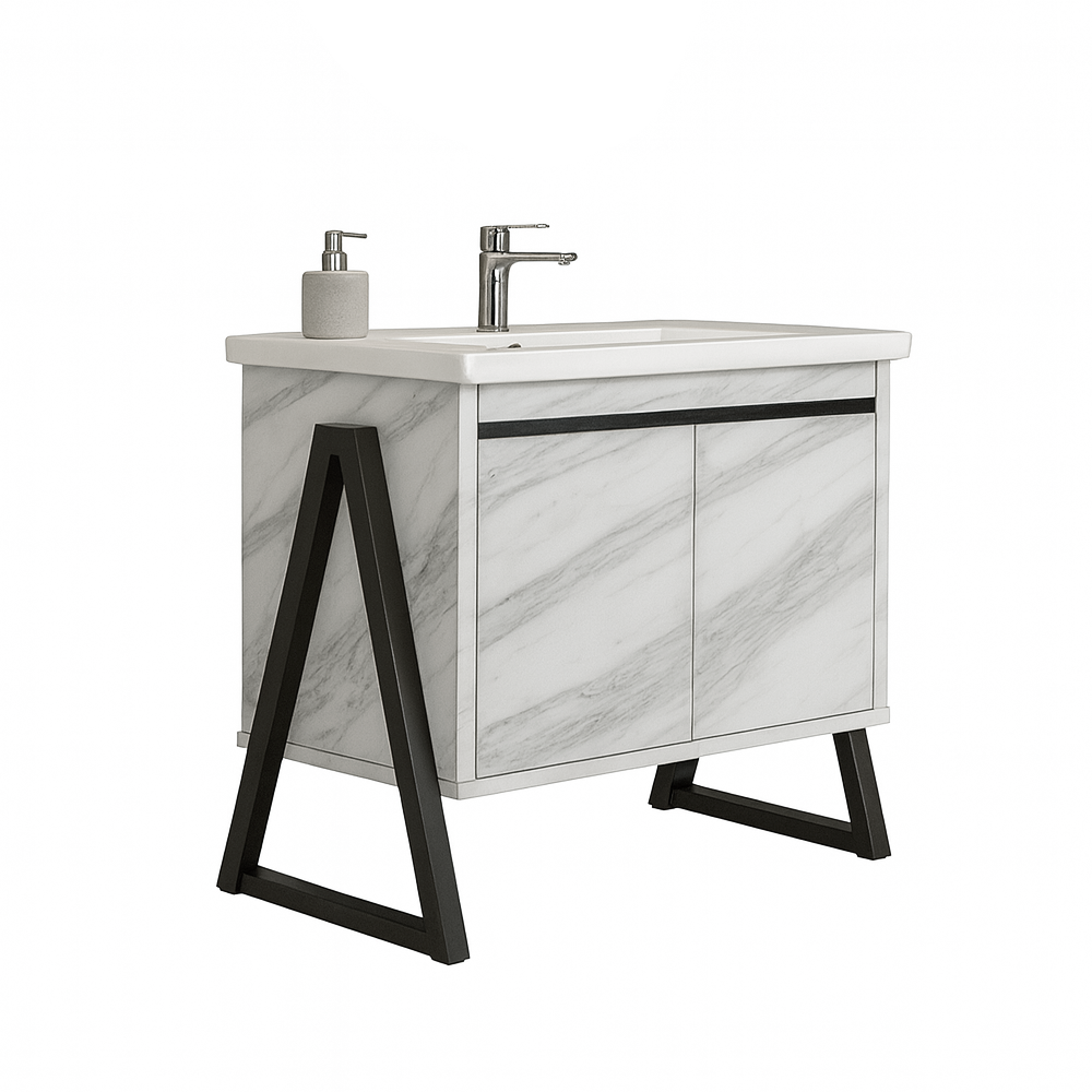 ΕΠΙΠΛΟ ΜΠΑΝΙΟΥ PRESTIGIA-PROGETTO 80 cm ΜΕ ΒΑΣΕΙΣ ΣΤΟ ΠΛΑΙ ΣΕ ΟΨΗ ΛΕΥΚΟΥ ΜΑΡΜΑΡΟΥ ΜΕ ΜΠΕΖ ΝΕΡΑ