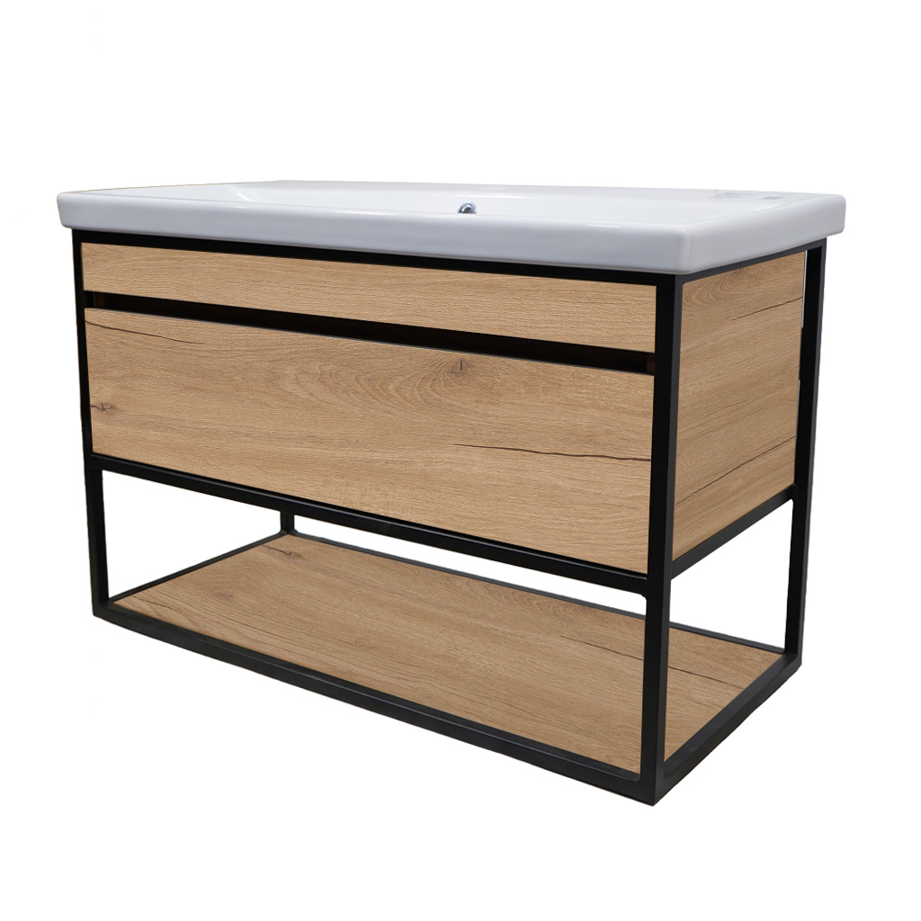 - Το σετ μπάνιου περιλαμβάνει: πάγκο με συρτάρι και ράφι, νιπτήρα, καθρέφτη