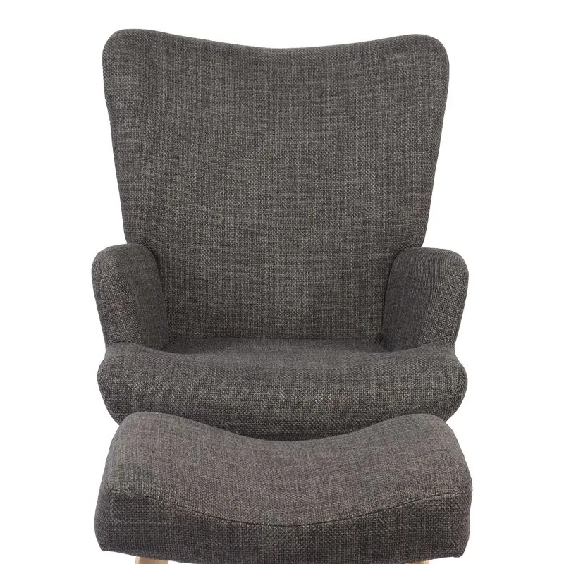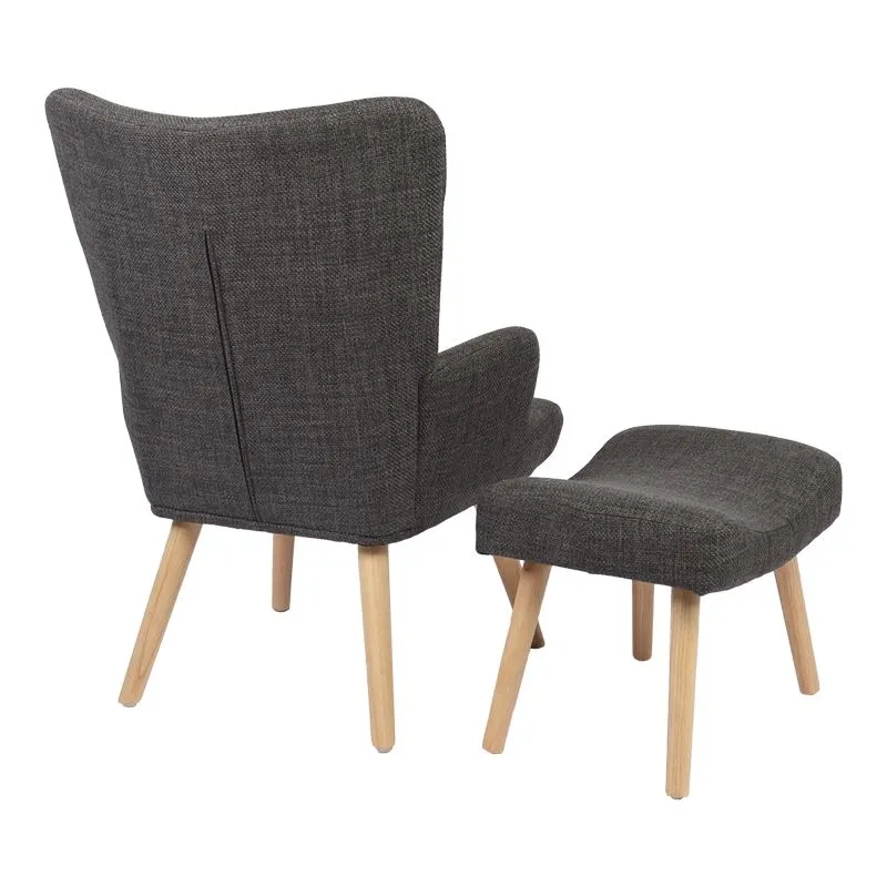Πολυθρόνα-μπερζέρα με υποπόδιο Gerlina ανθρακί ύφασμα με πόδι σε φυσική απόχρωση